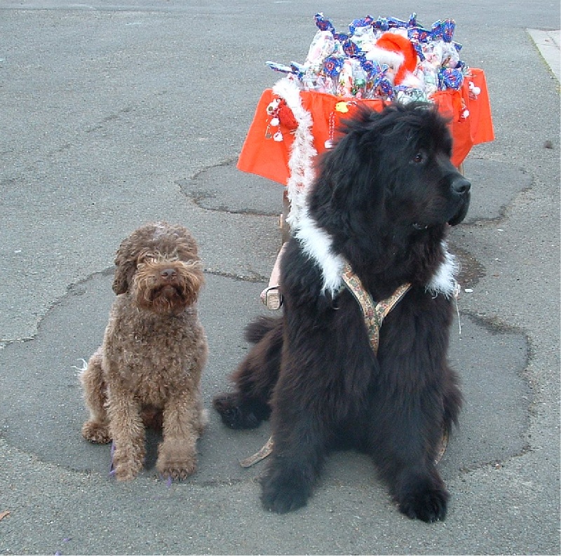 Hier Barbouille a accompagné Simoune à la distribution des chocolats pour une école , je vous envoie des photos , elle a pris son rôle trés au sérieux assise à cote de Simoune et pendant la remise des chocolats , chaque enfant qui caressait Moune devant la papouiller.